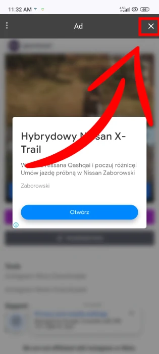 اگر همانند تصویر زیر در حین کار تبلیغاتی را مشاهده نمودید روی گزینه close یا ضربدر کلیک کنید تا تبلیغات سایت بسته شود.