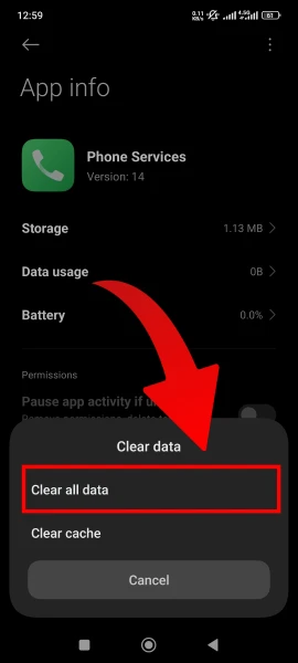 طبق آموزش و تصویر زیر روی گزینه پاک کردن تمامی داده ها یا clear data کلیک کنید . با این کار تمامی تنظیمات برنامه به حالت اولیه بازخواهد گشت و اگر مشکلی داشته باشد حل خواهد شد.